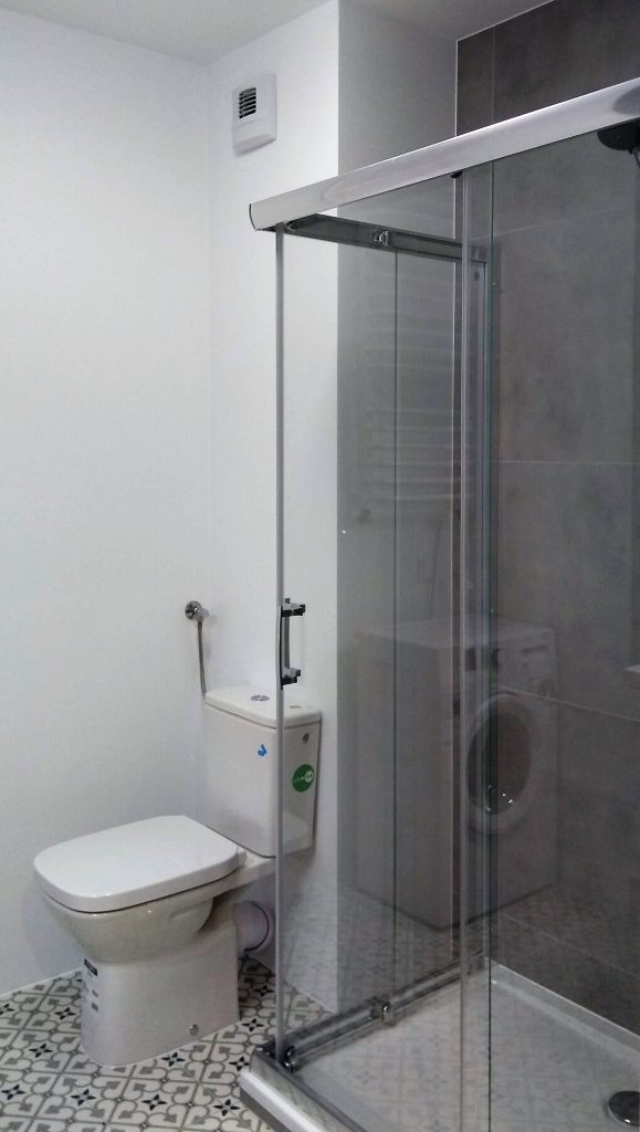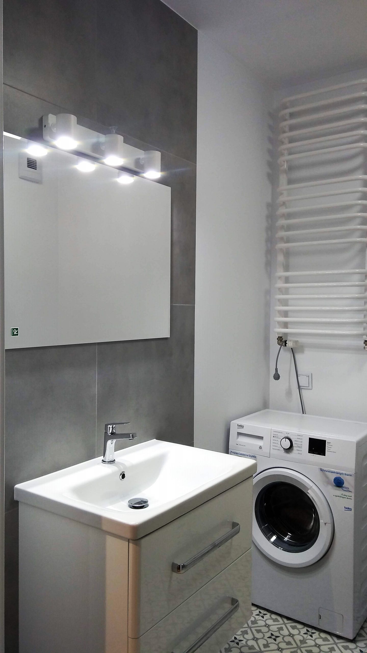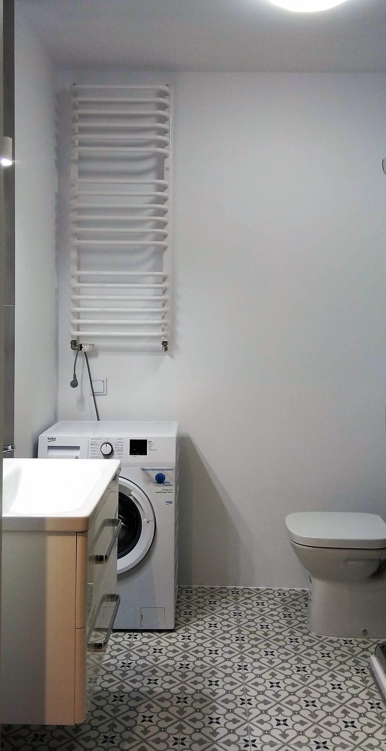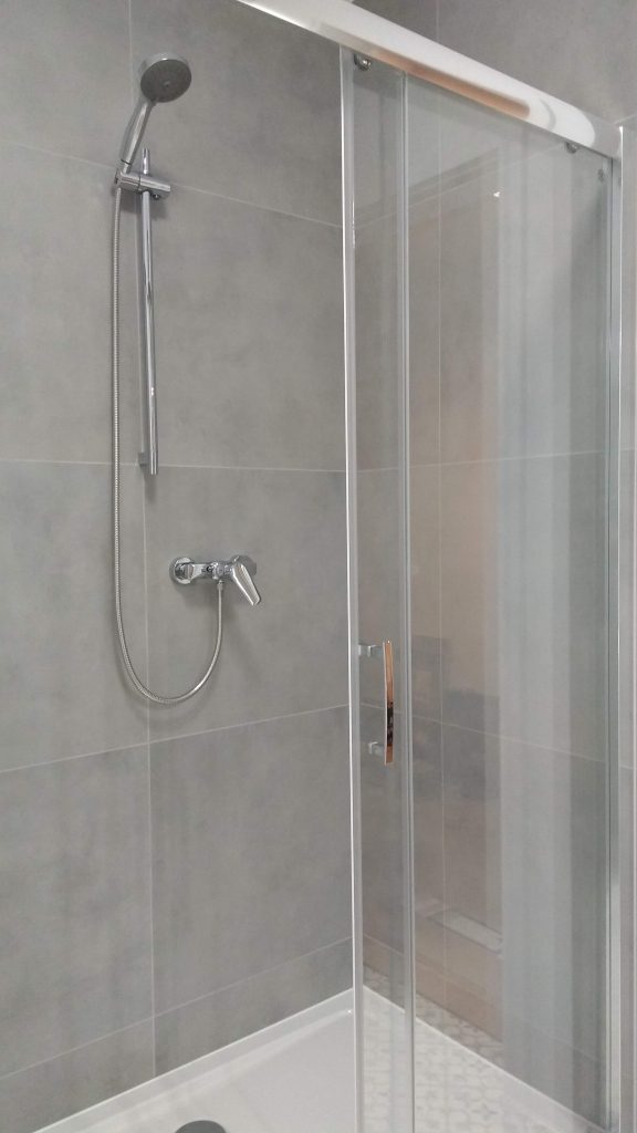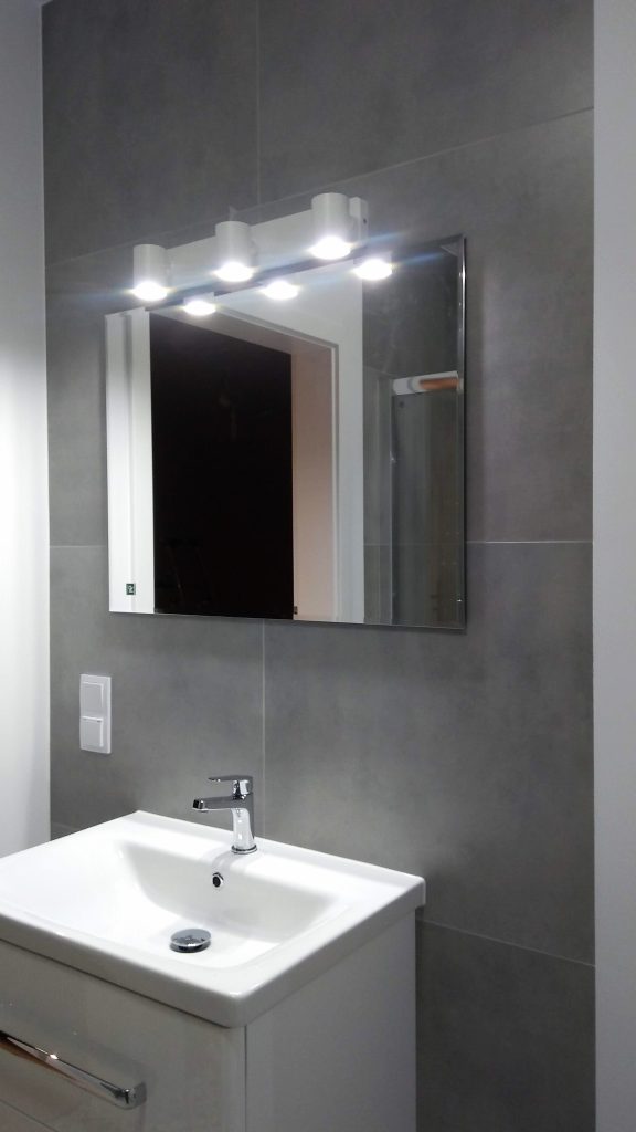 Łazienka – szary gres i biel